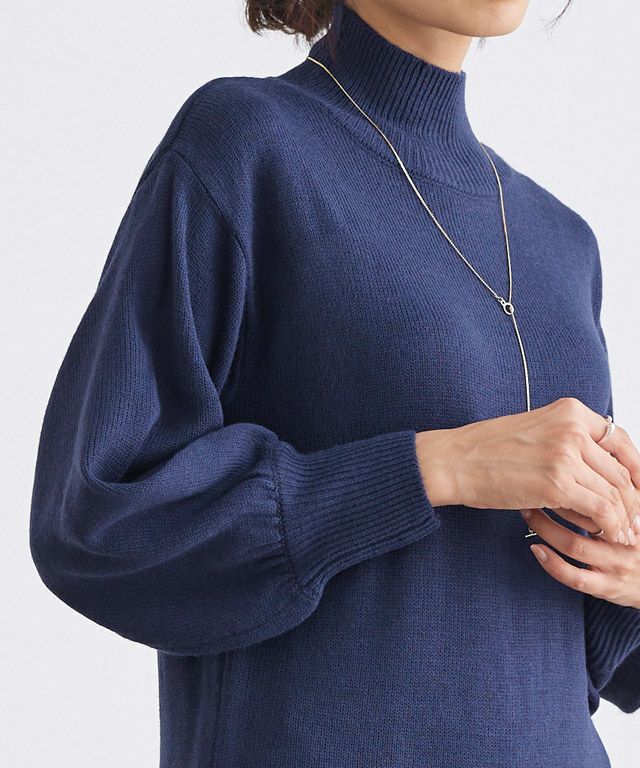 ボリュームのあるバルーンスリーブが旬をプラスし、女性らしい印象に仕上げてくれます。程よくゆとりがあり、体のラインを拾わずすっきり見えを叶えます◎顔回りもすっきり見せてくれるVネックと、上品な印象のハイネックから選べます。