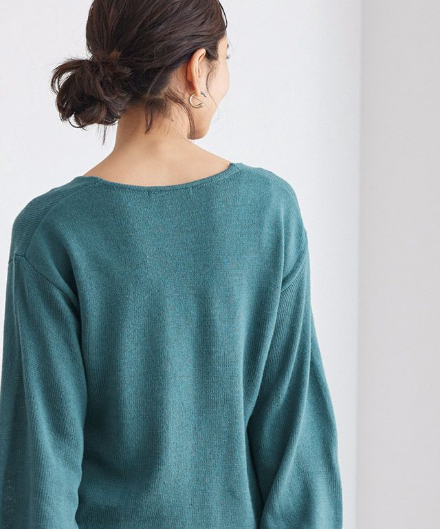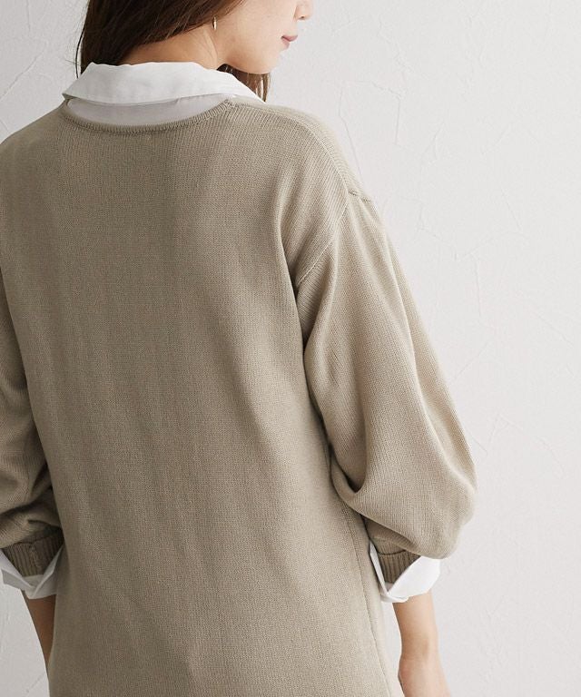 柔らかな風合いでチクチク感のないニット素材。シンプルな天竺編みにすることで、どんなスタイルにも合わせやすいのが嬉しいポイントです。ご自宅でお洗濯していただけるのでお手入れも簡単◎