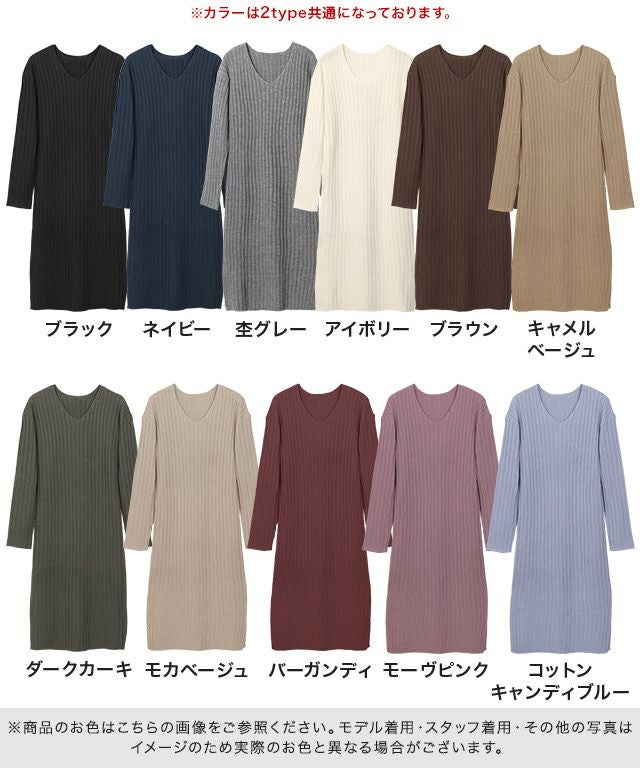 選べる2ネックリブニットワンピース