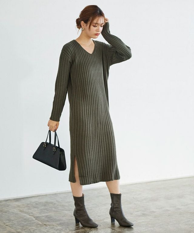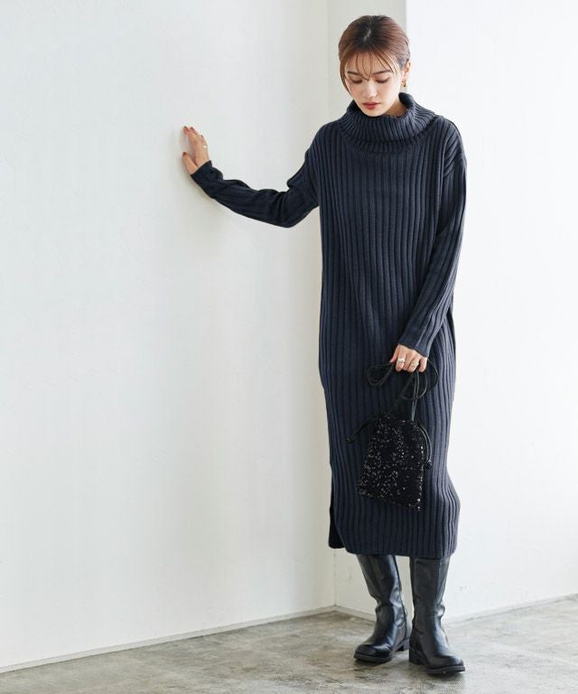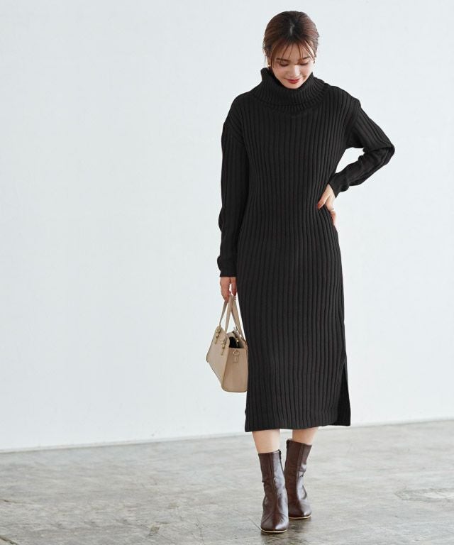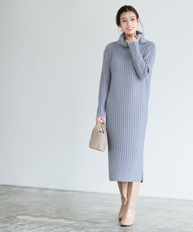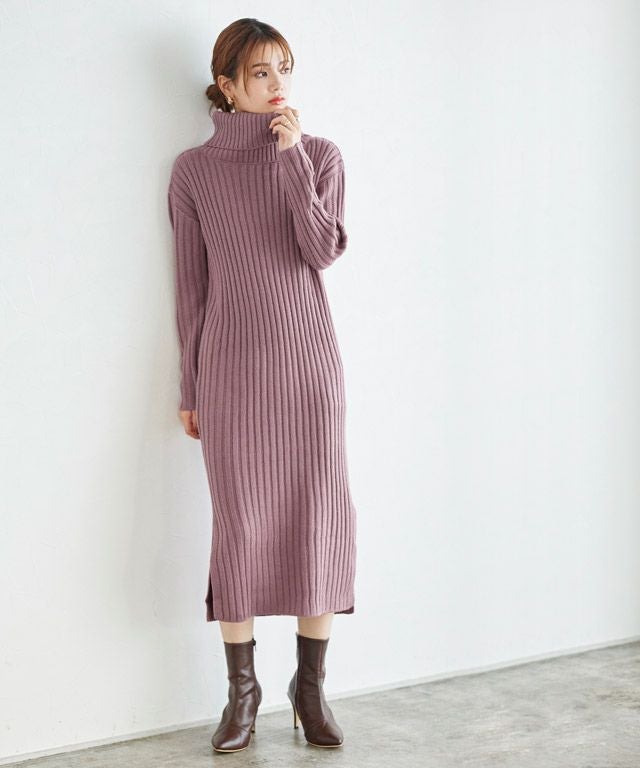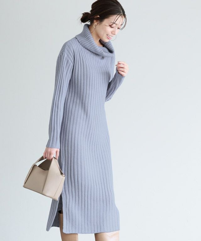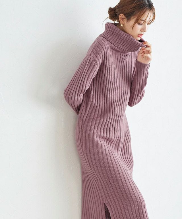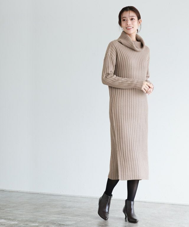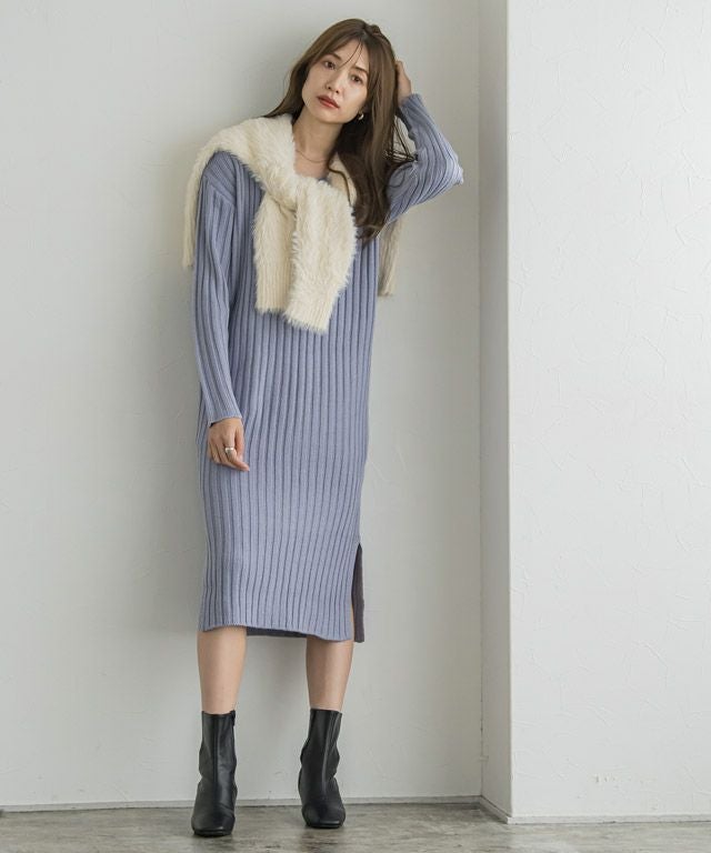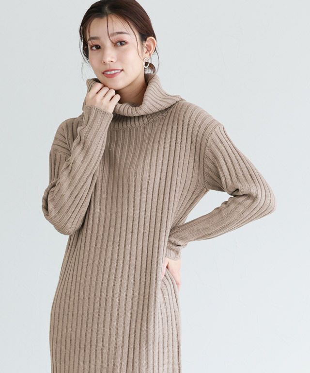 高見え叶う立体感のあるリブ編み“選べる2ネックリブニットワンピース”