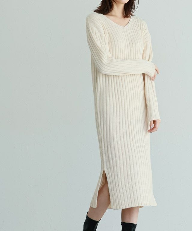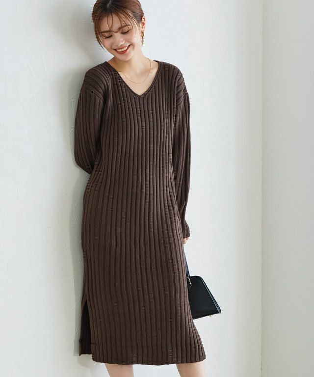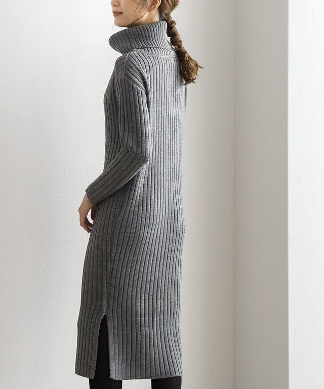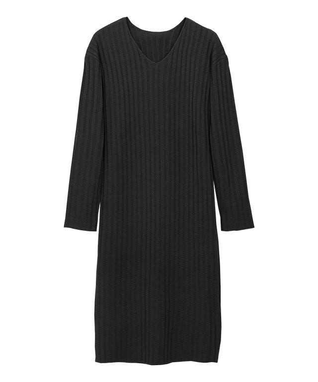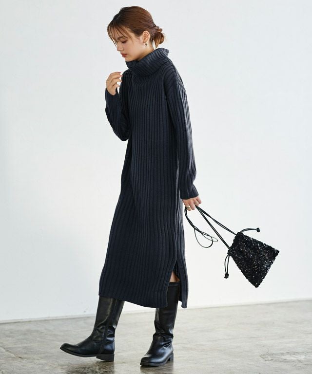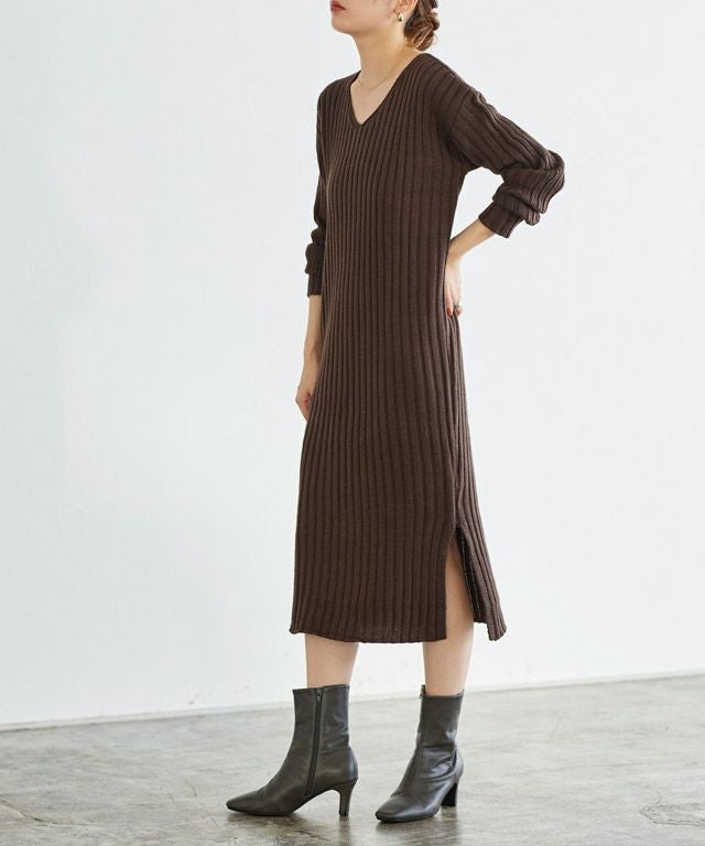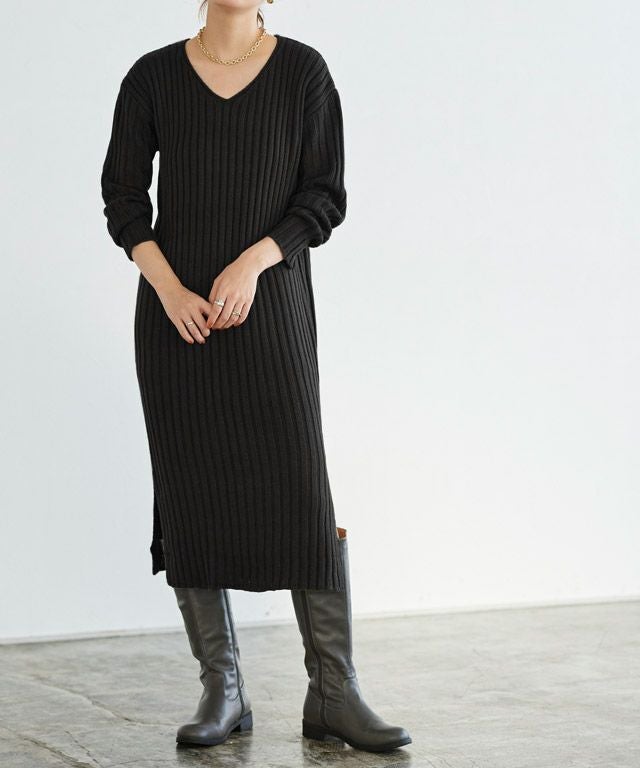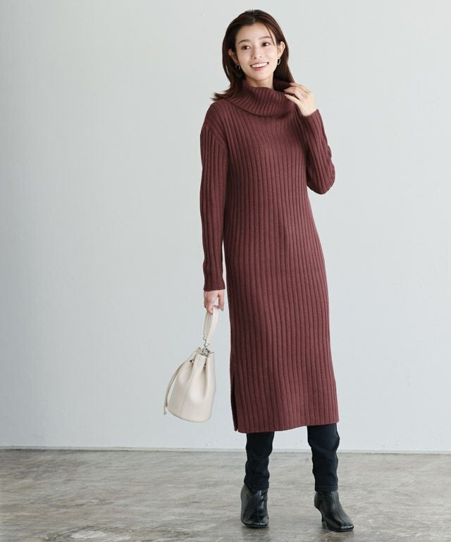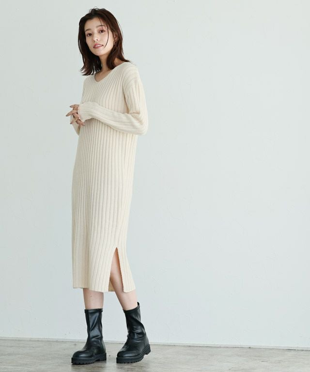 高見え叶う立体感のあるリブ編み“選べる2ネックリブニットワンピース”