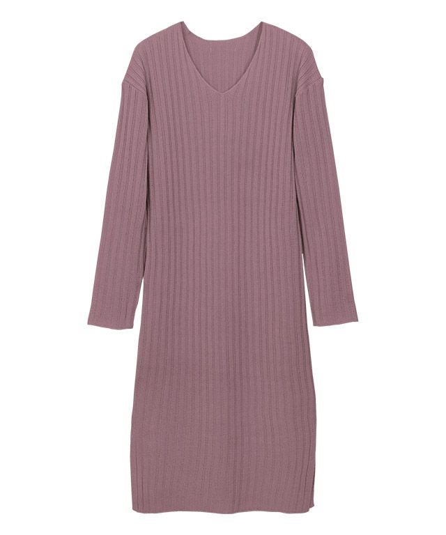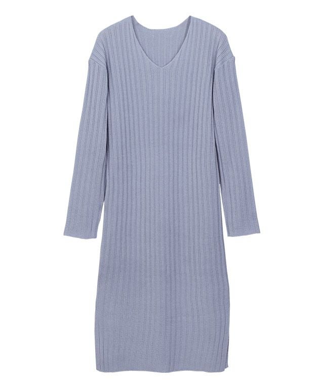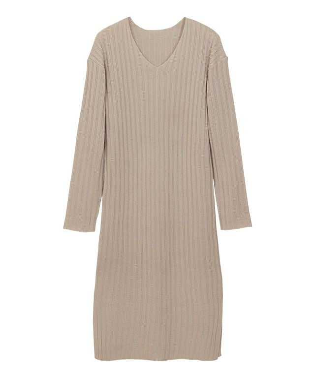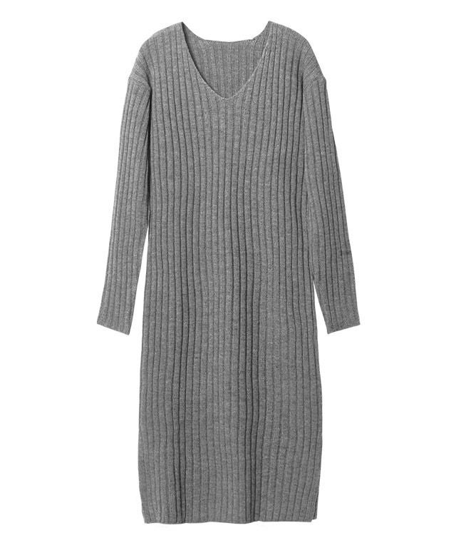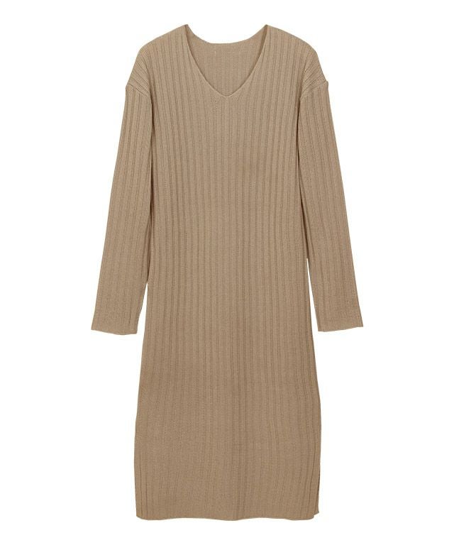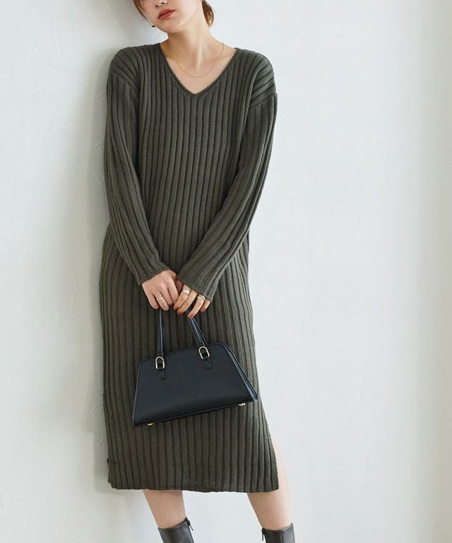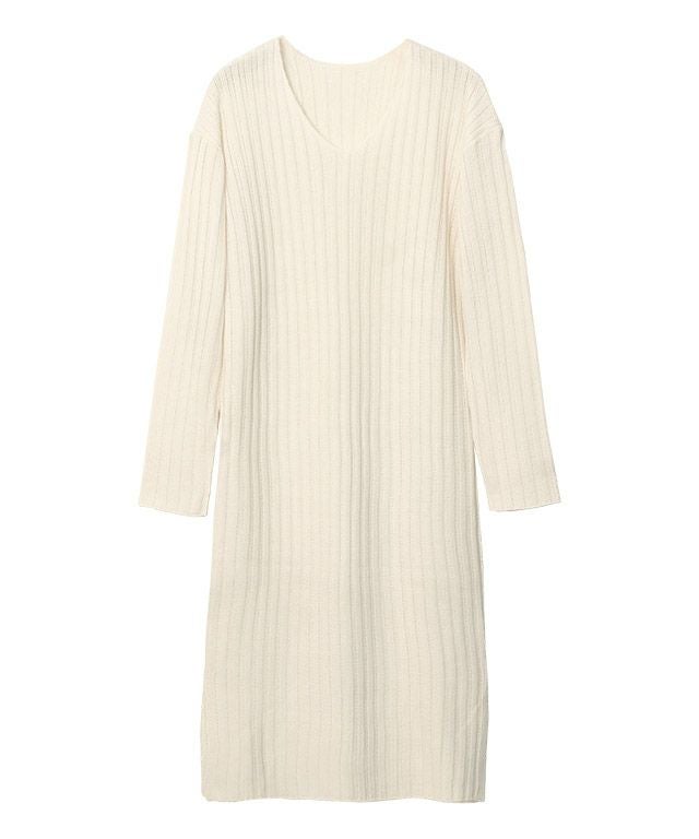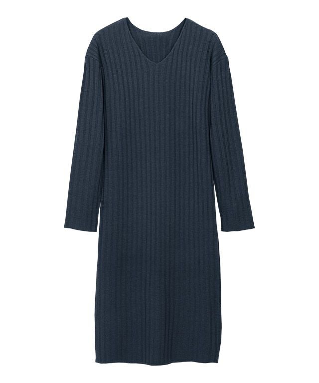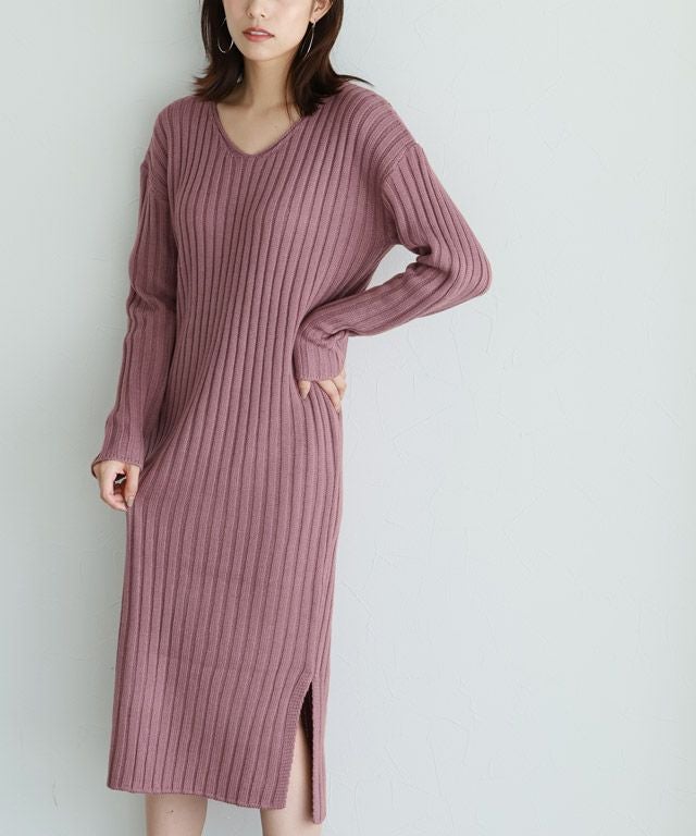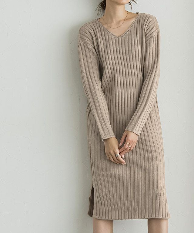高見え叶う立体感のあるリブ編み“選べる2ネックリブニットワンピース”