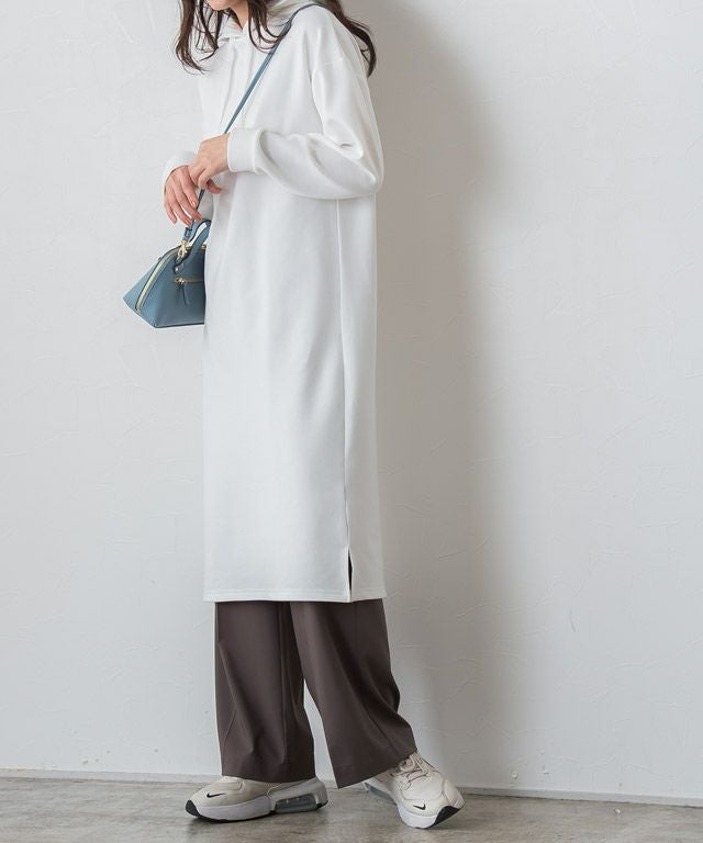 すとんとしたシルエットで、体のラインを拾わずリラクシーなスタイルに。サイドスリットで抜け感をプラスし、パンツとレイヤードしてもバランスの良いスタイリングが叶います。