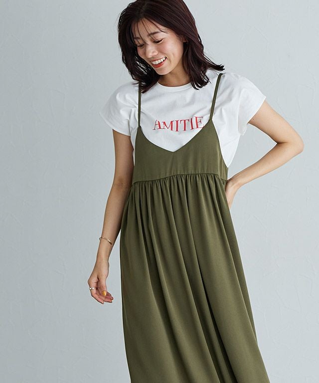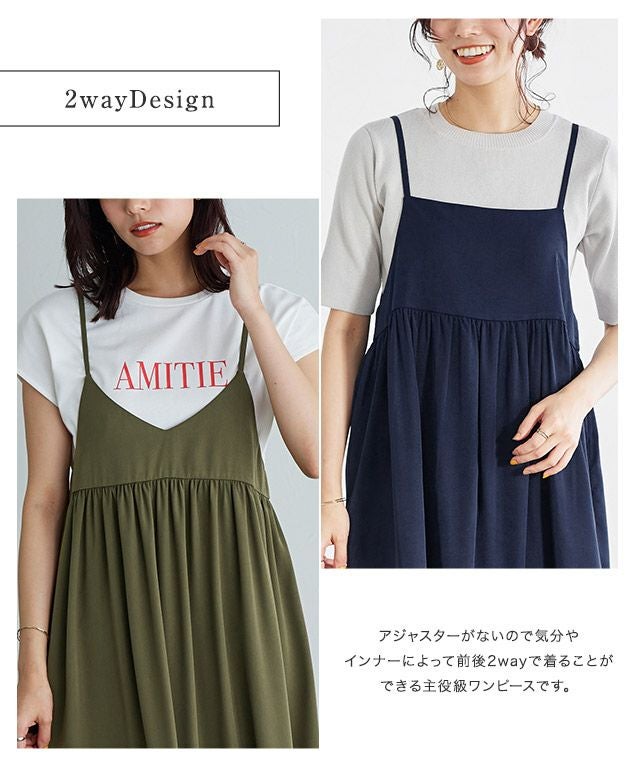 前後で着回し広がる“2wayギャザー切り替えキャミワンピース”
