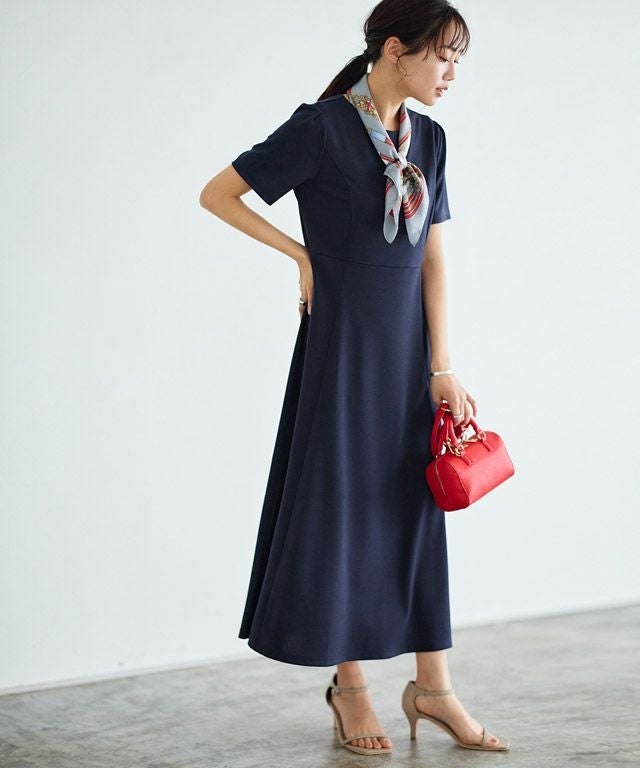 N 着丈は足首ちょうどの丈感でした。袖丈は肘上です。身幅はややゆとりがありました。ハリのあるポンチ素材で、シルエットがキレイです。お手入れも楽にできそうです。
