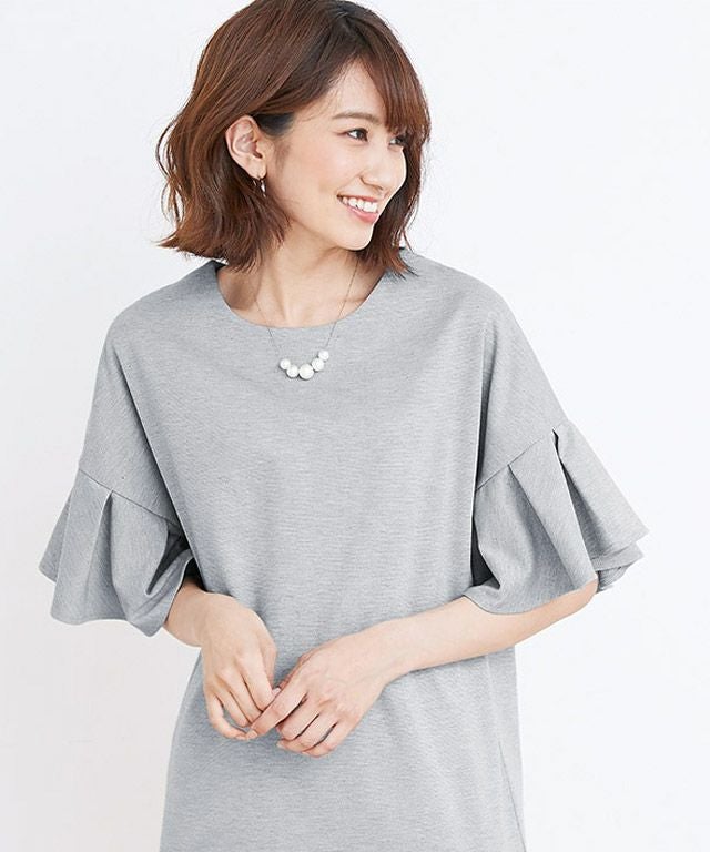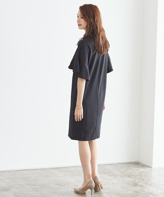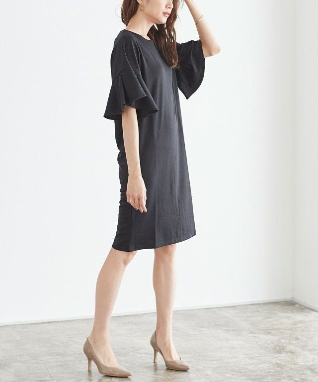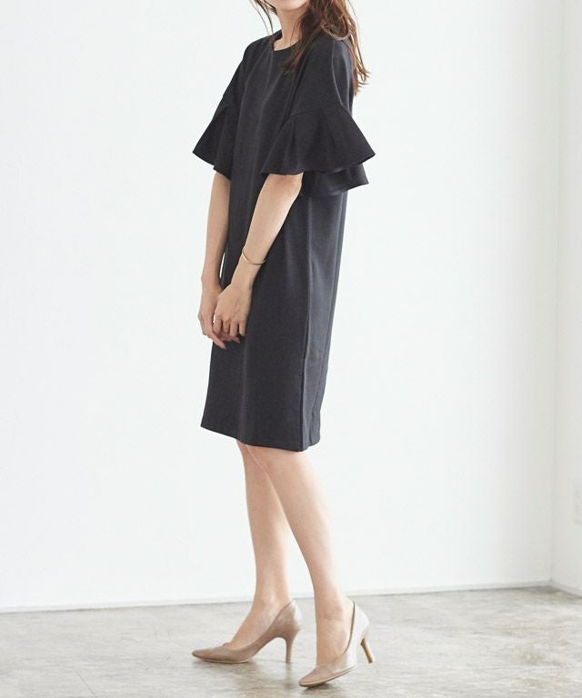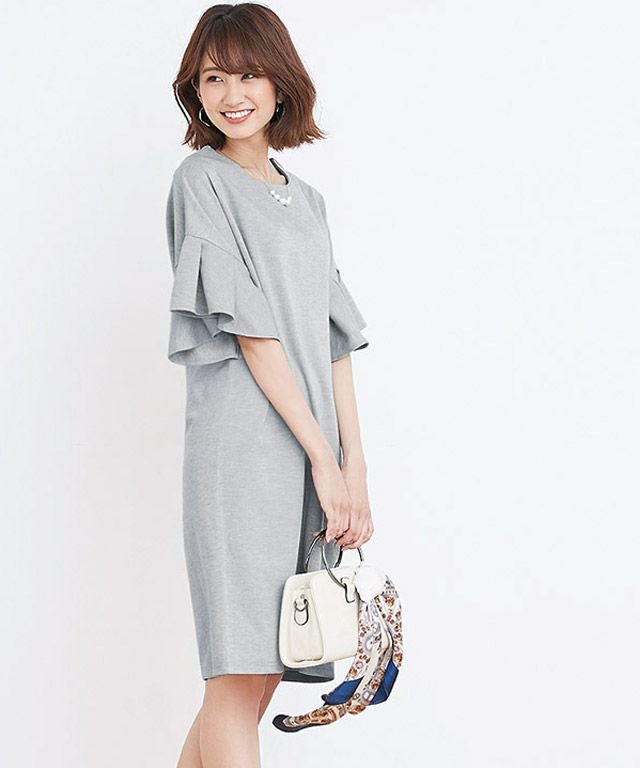 上品さも兼ね備える“フレア袖ポンチワンピース”