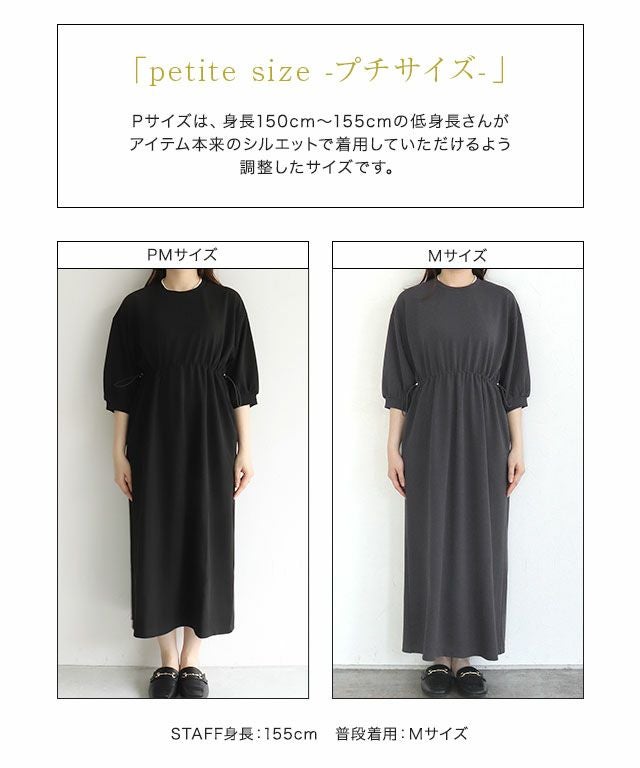 ふんわりとボリュームを持たせたパフスリーブが二の腕を自然にカバーしてくれるところも嬉しいポイント。ウエスト部分はドロスト仕様でギャザーの寄せ具合を自由に調節可能。スニーカーやサンダル合わせでカジュアルからきれいめまで幅広く活躍できます。