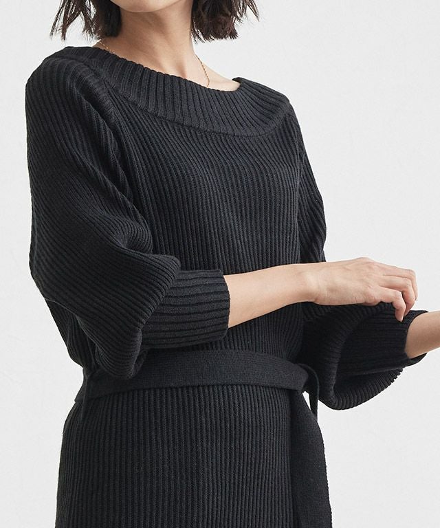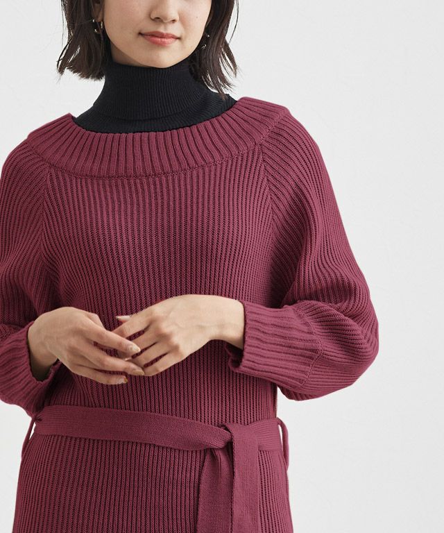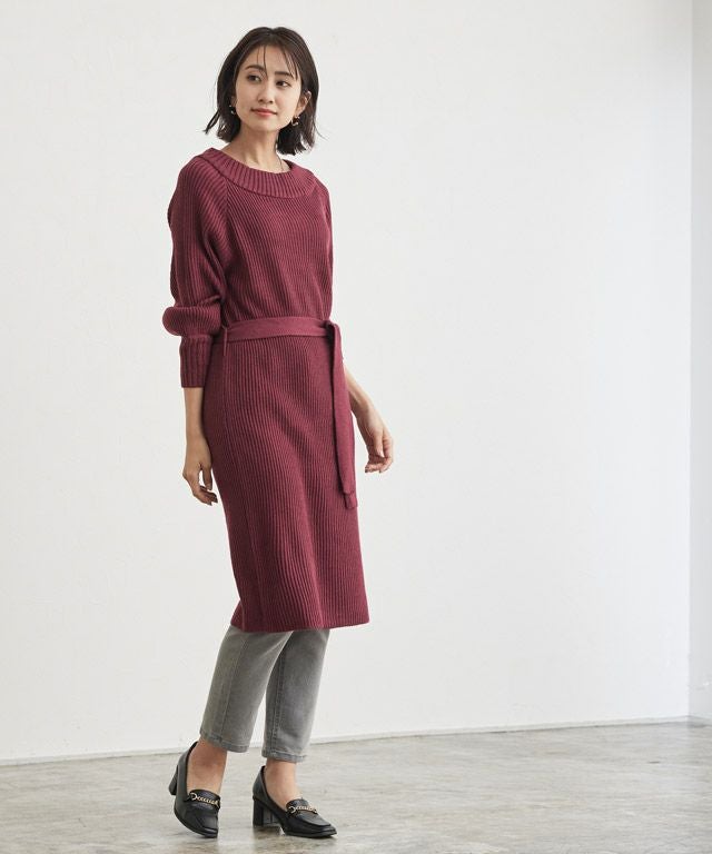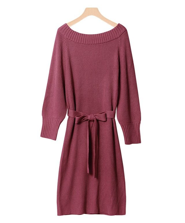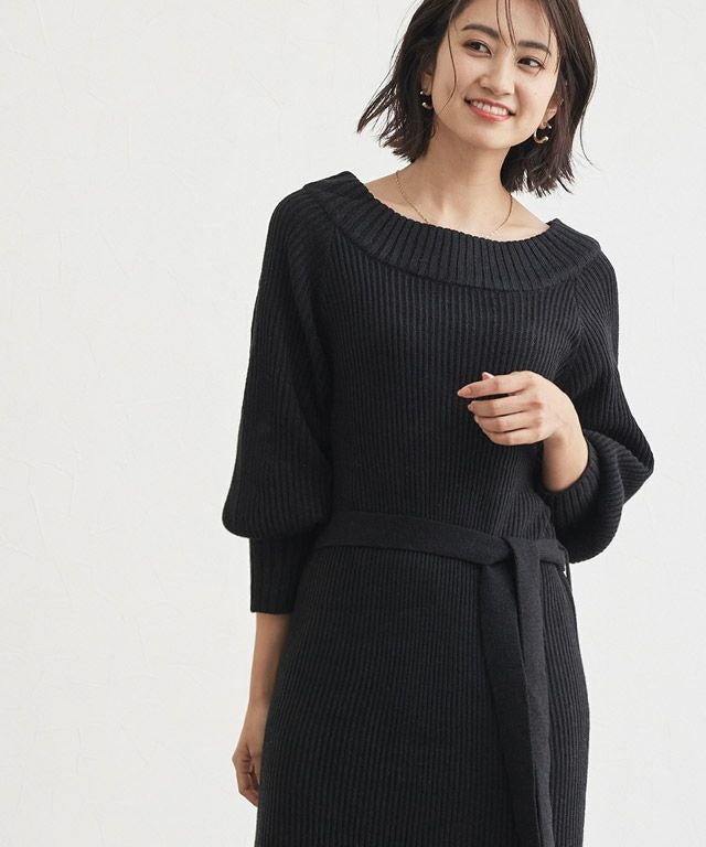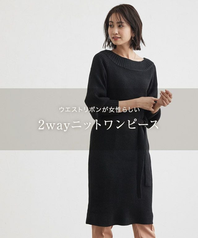 ウエストリボンが女性らしい“2wayニットワンピース”