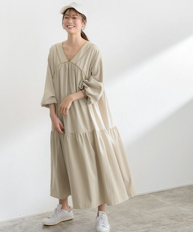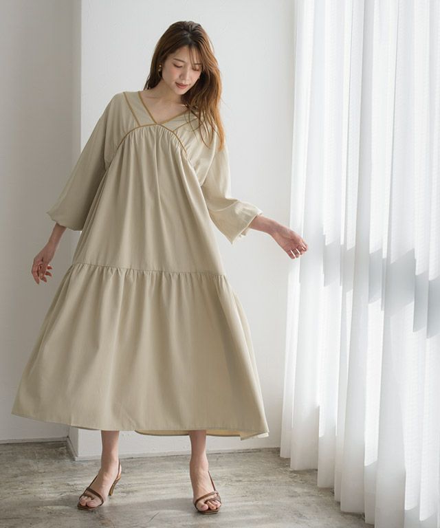 一枚でトレンドフェミニンコーデ仕上がる“パイピングティアードワンピース”