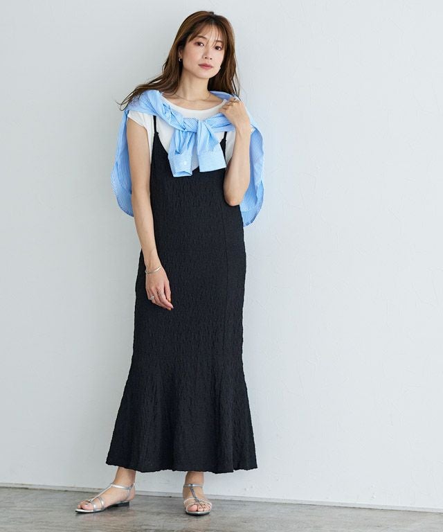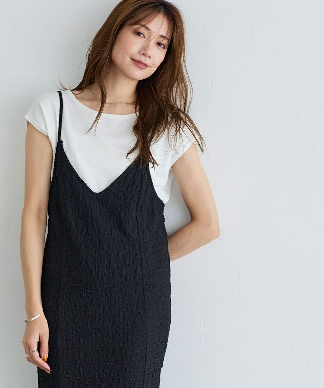旬な印象に仕上げる“ふくれジャカードカットソーキャミワンピース”