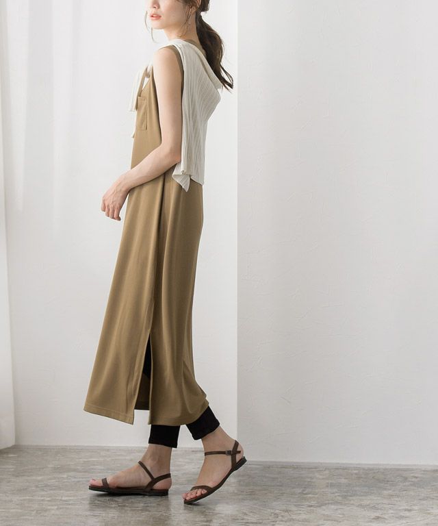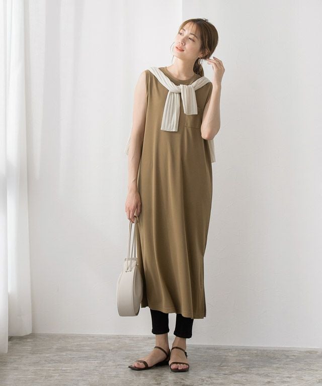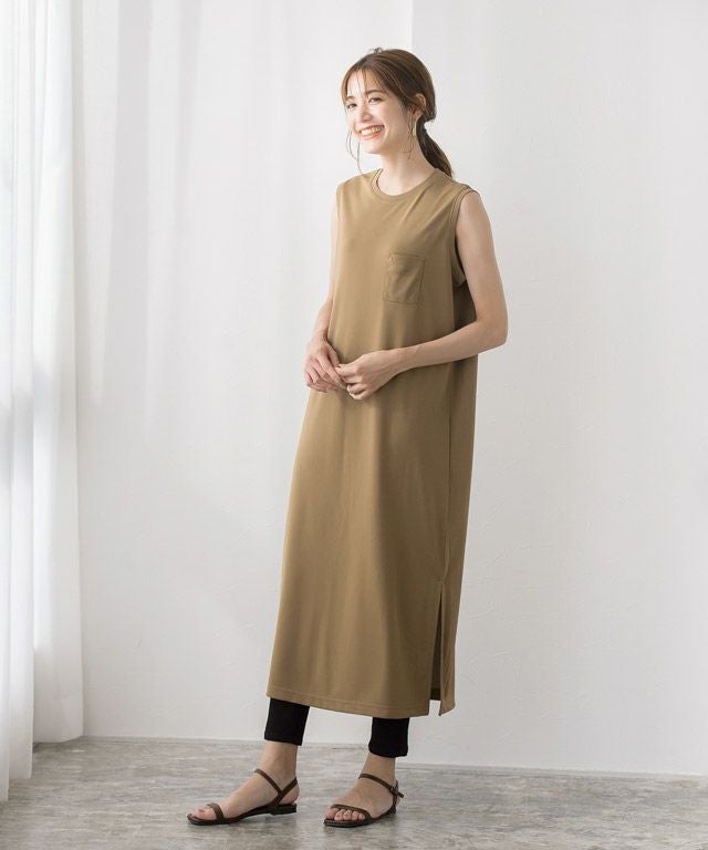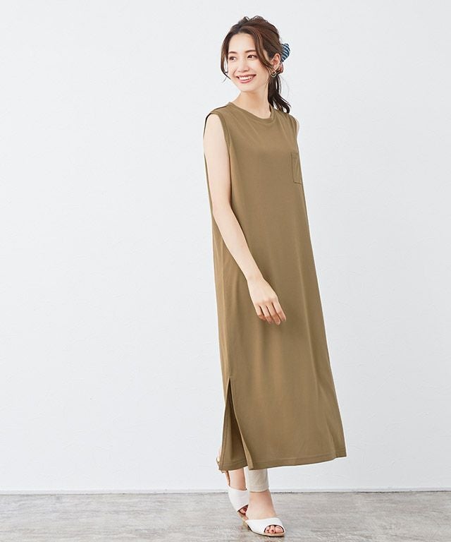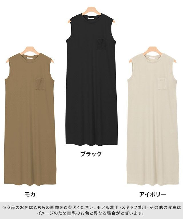 旬のロング丈スタイルが叶う“ミニポケットロングノースリワンピース”