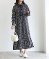 選べる柄配色リボンピンタックワンピース