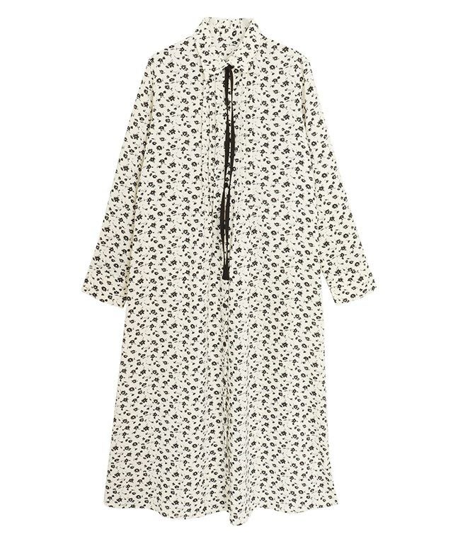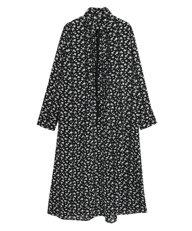 落ち感のある素材を使用し、くったりとした表情が抜け感のある雰囲気。タイリボンは敢えて配色にすることで、スタイリングに程よいポイントをプラスします。