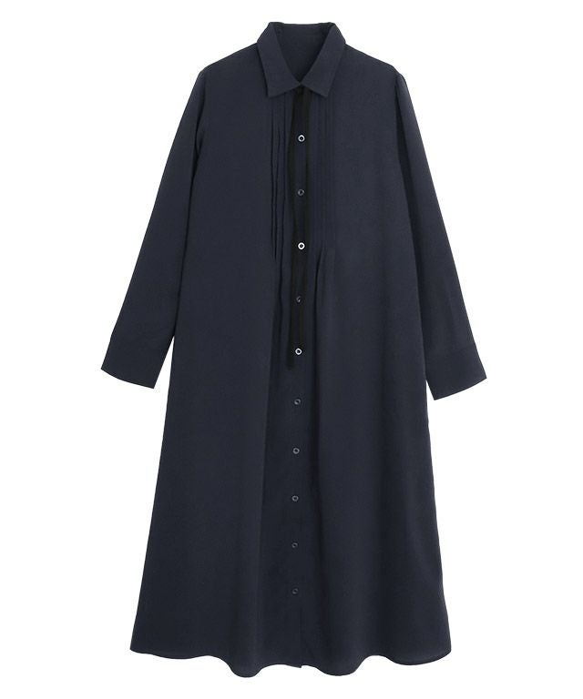 前身頃に施したピンタックデザインが落ち感のある素材に立体的な表情のあるアクセントに。セミフレアラインにすることで、体のラインを拾いすぎず、ふんわりとしたシルエットを演出します。