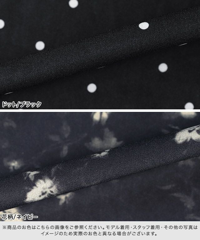 落ち着いた花柄が、大人でも着こなしやすいデザインに。ボタンVネックデザインで女性らしい印象へと導いてくれ、ウエストがシェイプされた下から広がるフレアラインと、すっきりとしたデコルテラインが大人っぽい雰囲気に。