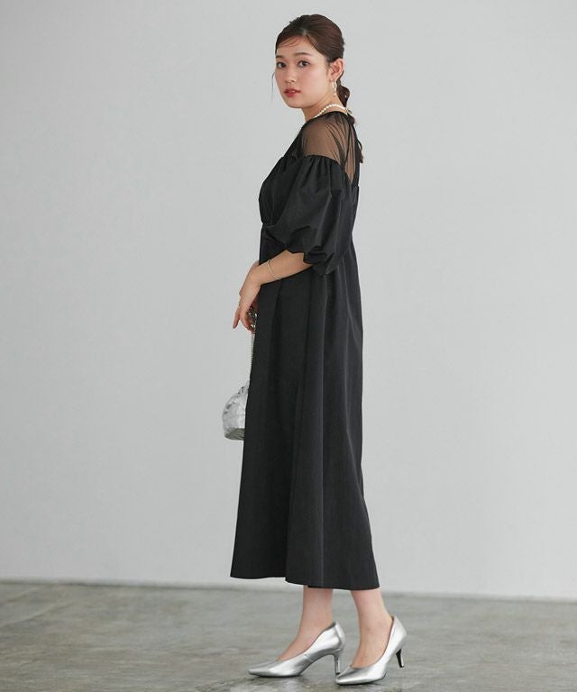 デコルテのチュール切り替えが抜け感をプラスしてくれるデザイン。首元のギャザーとぽわんとしたバルーン袖が大人かわいい印象に導いてくれます。胸元とウエスト部分はゴム仕様でストレスフリーなところも魅力の一つ。オケージョンシーンにおすすめのアイテムです。【ブランド】