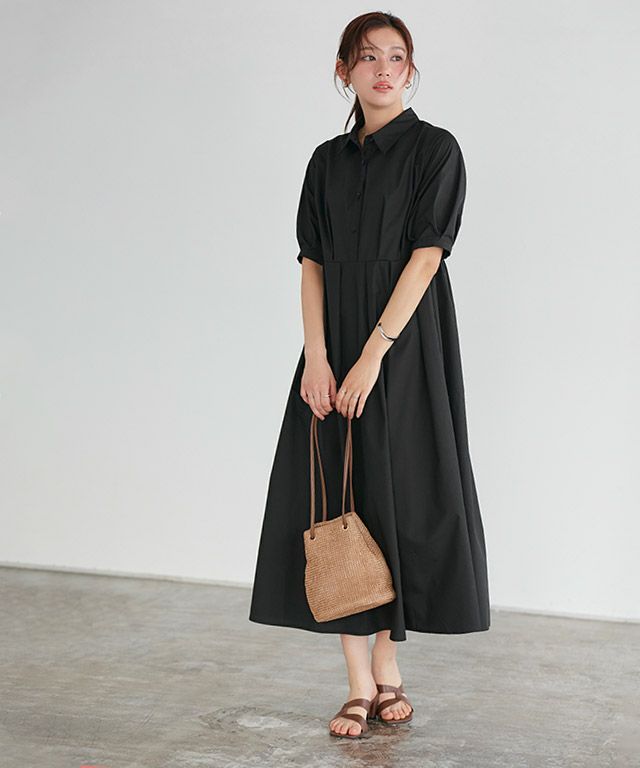 きれいなフレアシルエットが女性らしい“パフスリーブシャツワンピース”