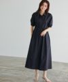 パフスリーブとフレアシルエットがフェミニンなワンピース。ウエスト切り替えにすることで、メリハリのある女性らしいシルエットに仕上げました。衿付きできちんと感を演出し、ON/OFF着回せる一枚です。