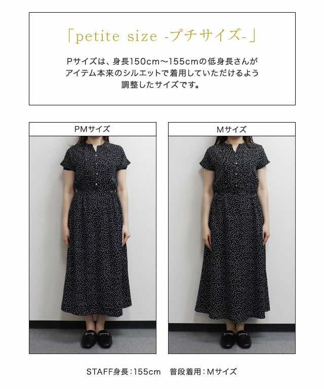 H PM…着丈はふくらはぎ下の丈感でした。袖丈は肩が隠れるフレンチスリーブです。身幅は程よいゆとりがありました。