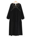 H 着丈は足首の少し上の丈感でした。袖丈は手首で留まります。袖口がゴムになっているので好きな位置に調整できます。ゆったりとしたサイズ感でした。さらっとした肌触りです。パイピングデザインがアクセントになります。
