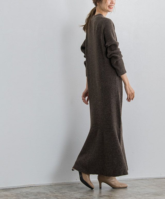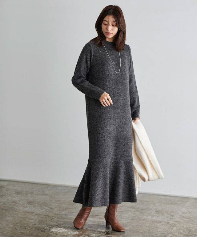 女性らしさ漂う“ふんわりウォッシャブル裾切り替えプチハイネックニットワンピース”