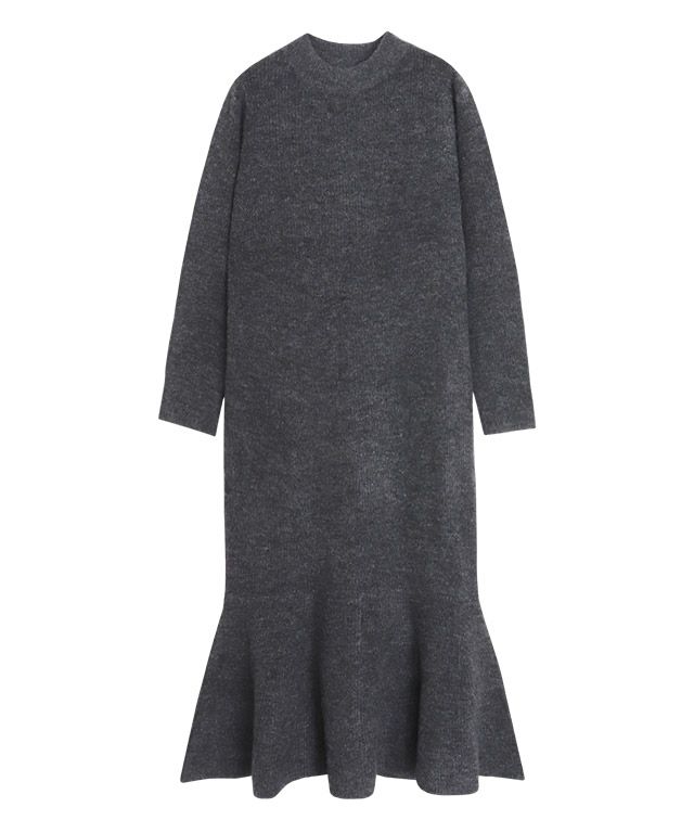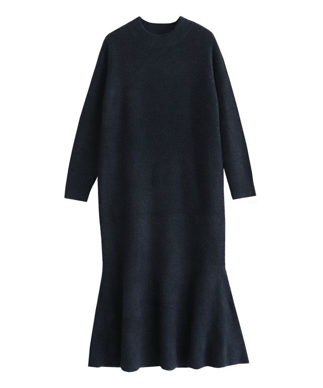ふんわりウォッシャブル裾切り替えプチハイネックニットワンピース