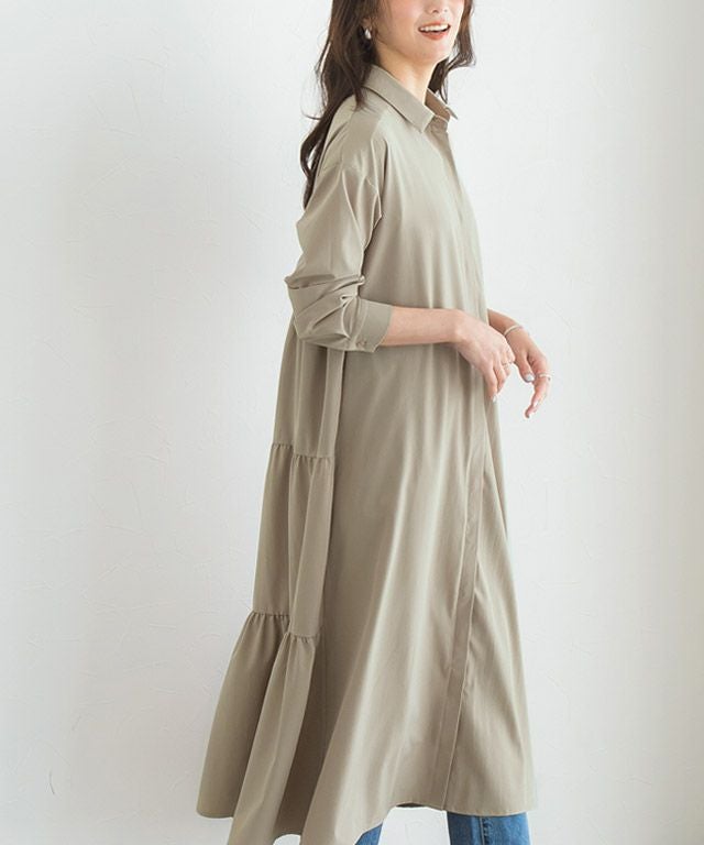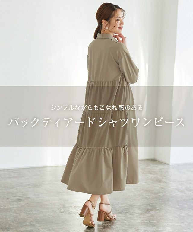シンプルながらもこなれ感のある“バックティアードシャツワンピース”