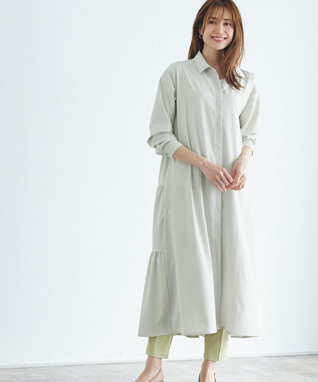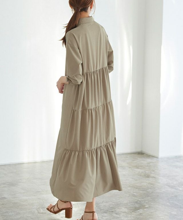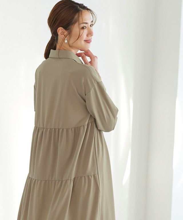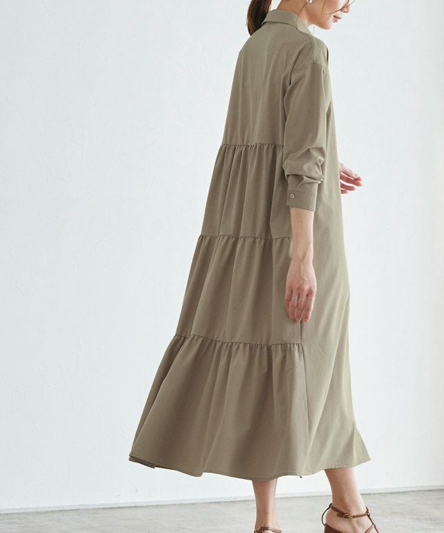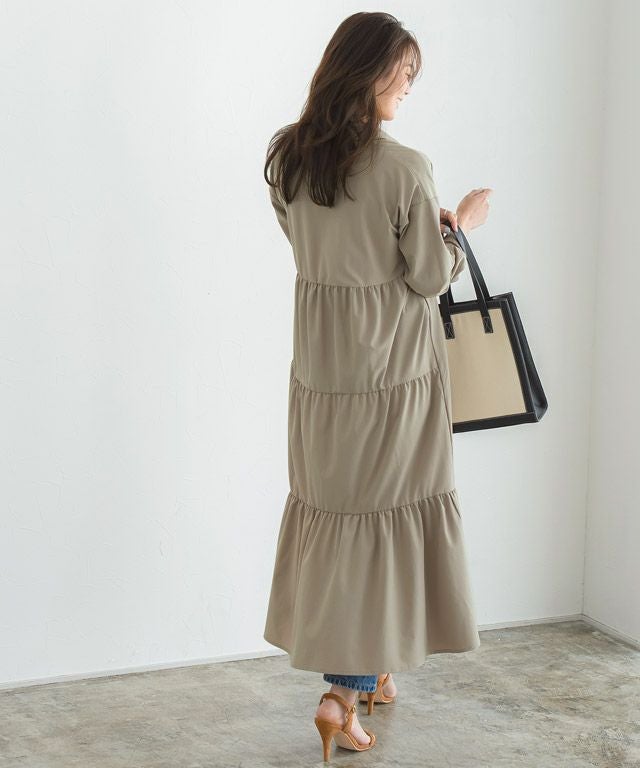 フロントデザインはシンプルな仕上がりで比翼仕立てにすることで上品見えし、落ち着いた印象へ導きます。後ろはティアードデザインにすることでバックスタイルにもこだわった一枚◎ワンピースとしての着用はもちろん、羽織としても着用していただけるので、コーディネートの幅が広がります。