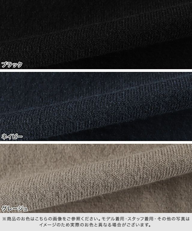また、ニット製品は生産の過程上「生地を織る際の糸の継ぎ目」繊維の「混紡」、プレス加工、製品洗い加工によって形やサイズ(5cm前後)に誤差が生じる場合がございますが品質上の問題はございません。