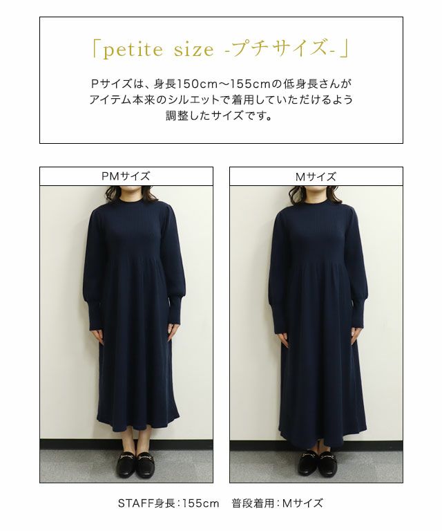 袖のリブを長めにしボリューム感を演出し、ウエスト周りにギャザーを入れふんわりと広がるシルエットが女性らしさ漂うワンピース。身頃はリブ編みで切り替えることで表情を持たせ、一枚で着映えるように仕上げました〇