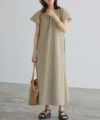 I 着丈は足首ちょうどの丈感でした。袖丈は二の腕が半分隠れます。身幅はゆとりがありました。薄手でハリ感のある素材です。軽い着心地です。