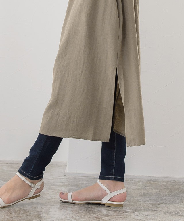 レイヤードスタイルで今年らしい着こなしに“ベルテッドノースリーブロングシャツ”