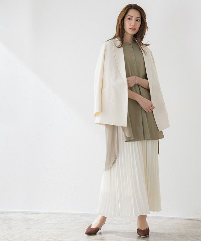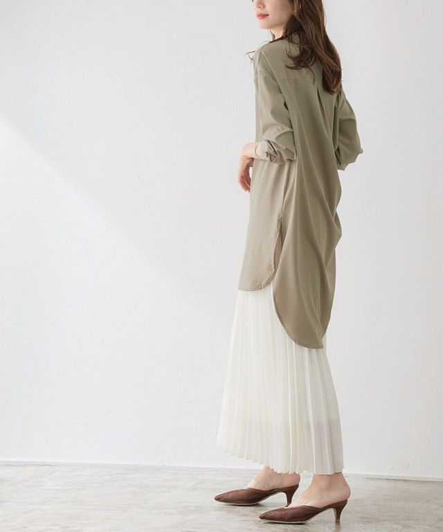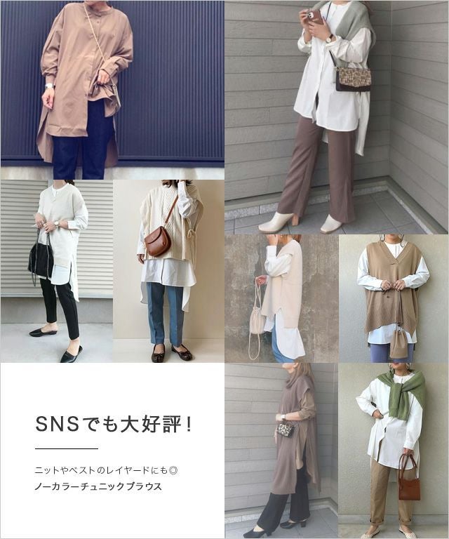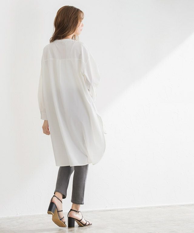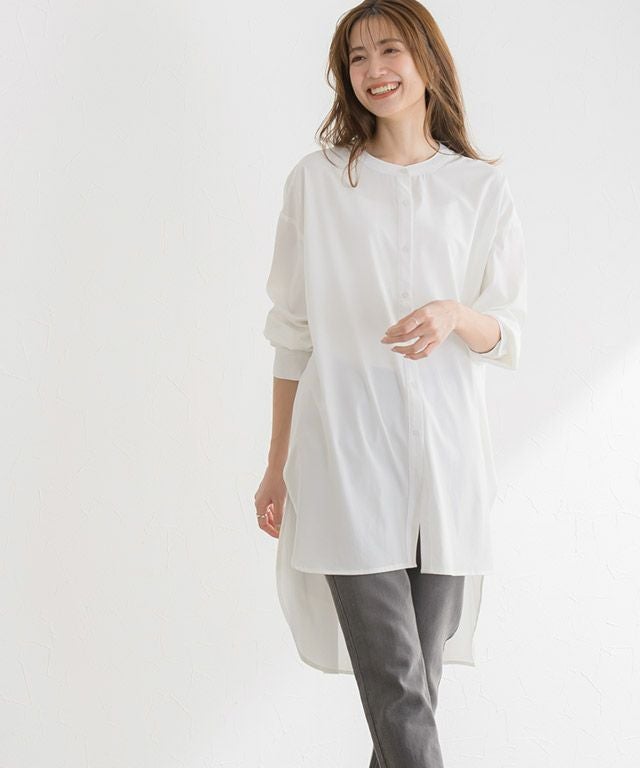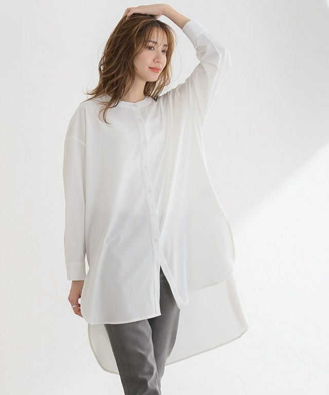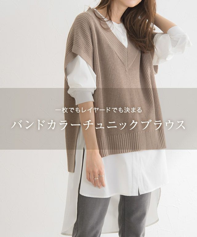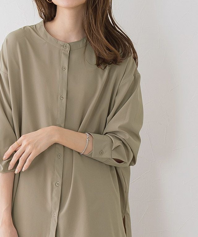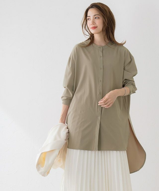 一枚でもレイヤードでも決まる“バンドカラーチュニックブラウス”