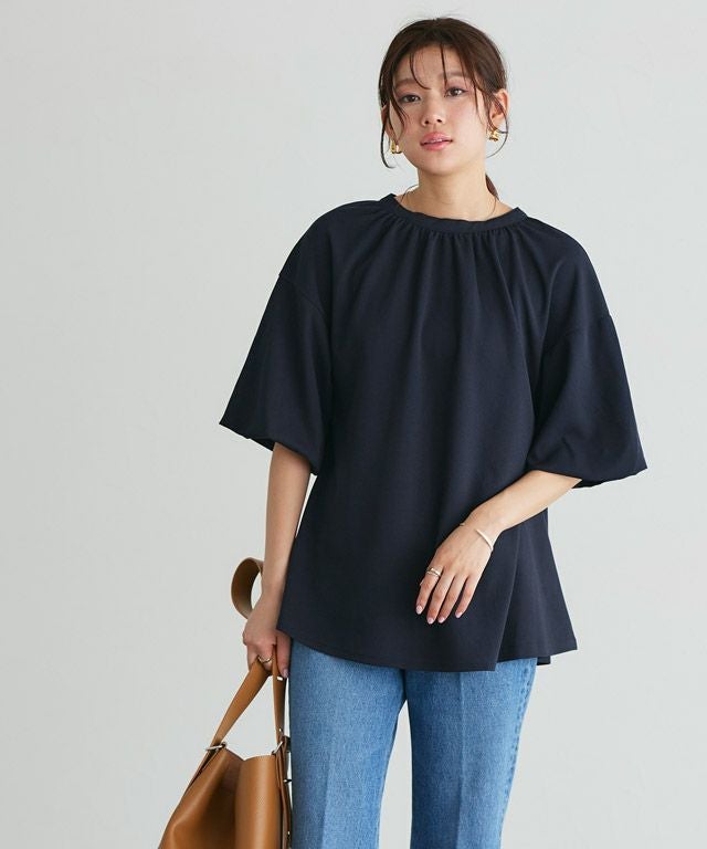 お腹と二の腕ががカバーできて良かったです。バルーンスリーブの袖口はゴムが使われていないので、着心地よくてよかったです。