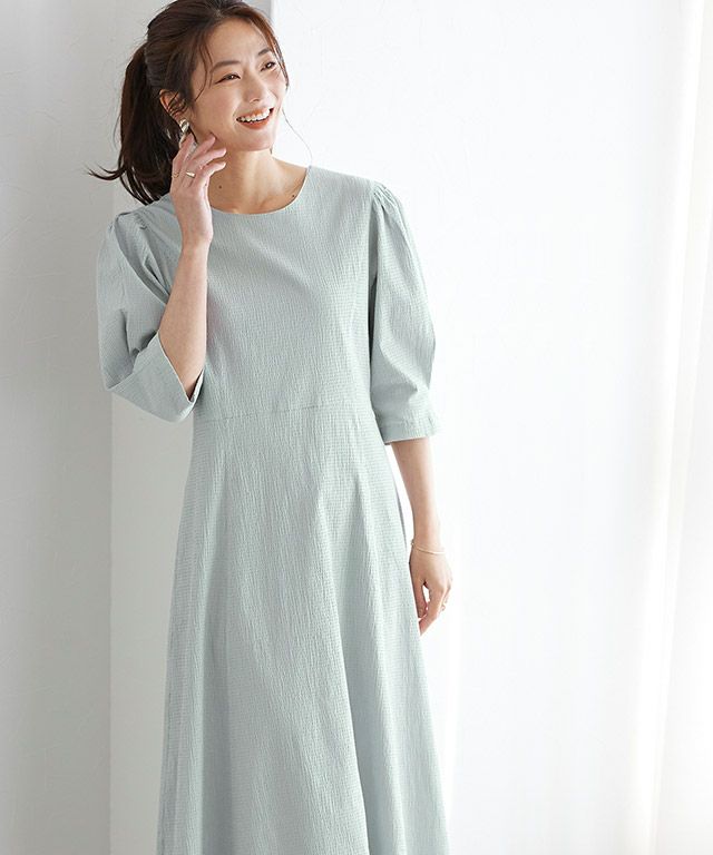 フェミニンディテールが着映えする“リップルパフスリーブフレアワンピース”