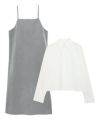 キャミワンピースは前後2wayで着用でき、インナーや着こなしによって雰囲気を変えられます。ブラウスやシャツと合わせやすいIラインで、すっきりシルエットに仕上げました。シャツとブラウスはキャミワンピースのインナーとして着用したり、羽織りとの着用も◎それぞれ単体でも着回しができるので、1セットもっているだけでコーディネートの幅が広がるアイテムです。