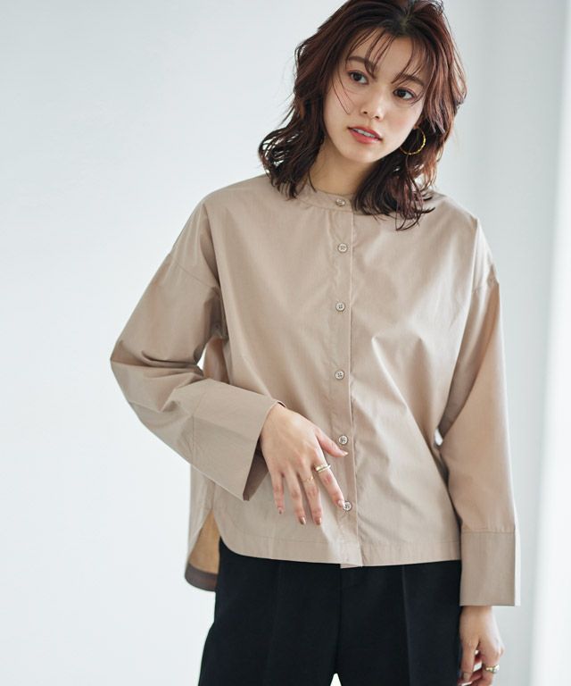 アクセントになる一枚“バンドカラービッグスリーブブラウス”