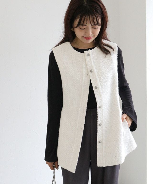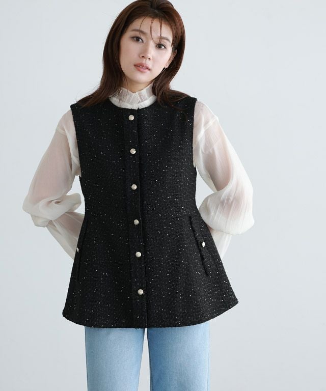 華やかに仕上げてくれる“ラメツイードペプラムジレ”