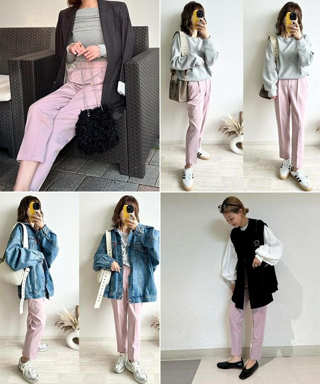 パンツ一覧です。スラックス、ジーンズ、チノパン、ハーフパンツなどの種類があり、素材や形状、カラーによって様々なスタイルが楽しめます。コーディネート次第でカジュアルからビジネスまで幅広いシーンで活躍するアイテムです。