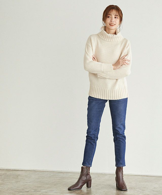 また、ニット製品は生産の過程上「生地を織る際の糸の継ぎ目」繊維の「混紡」、プレス加工、製品洗い加工によって形やサイズ(5cm前後)に誤差が生じる場合がございますが品質上の問題はございません。