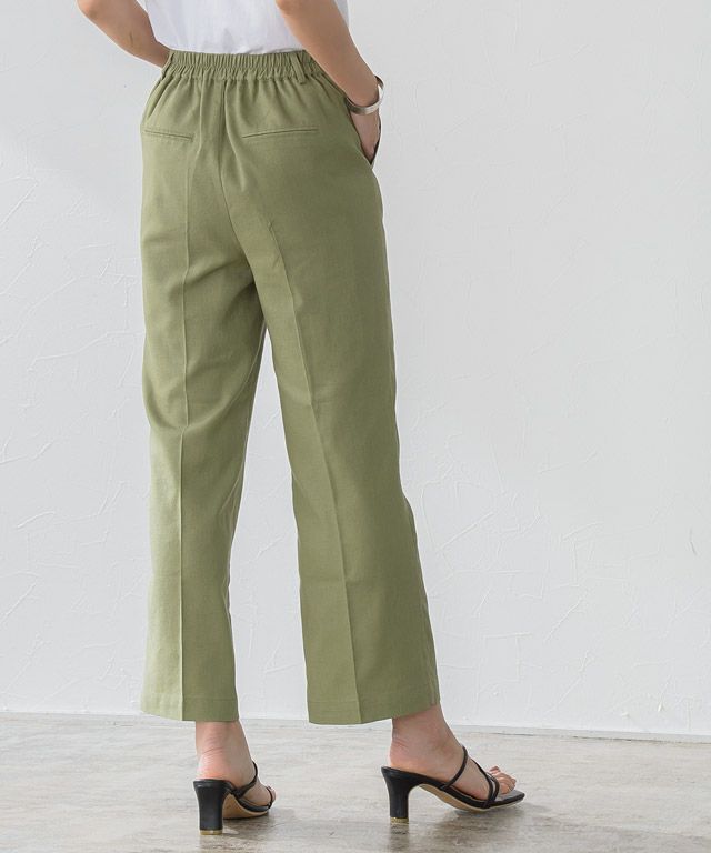 リネン素材できれい見えを叶える“麻混ピンタックボックスパンツ”