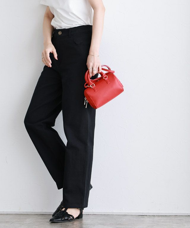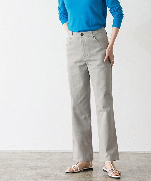 綿100%のツイル素材で程良くハリ感があり、脚のラインを拾いにくいところが嬉しいポイント。シルエットをキープしつつも穿きやすい一枚です。