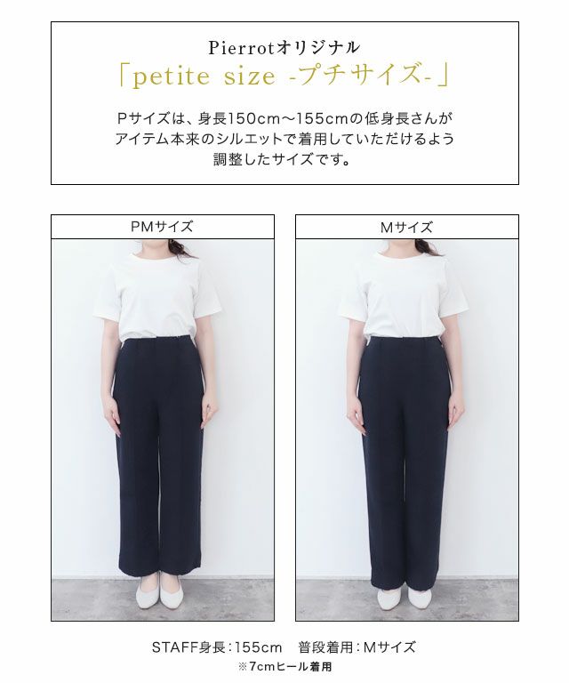 J 着丈は足首が見える丈感でした。ウエストは程よくゆとりがあり、ヒップにはゆとりがあります。柔らかく軽い着心地です。ゆとりのあるシルエットなので窮屈感なく着用できます。