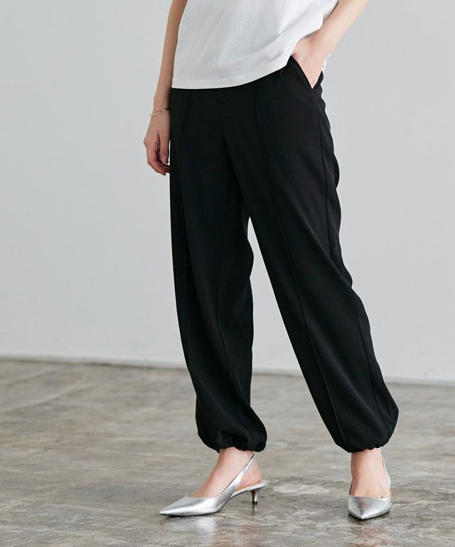 裾を絞らなければストレートシルエットで、きちんと見えを叶えるデザイン。裾のコードを絞るとシルエットを変えることができ、スタイリングを楽しむことができます。絞った際にコードが裾から出ない仕様もこだわりポイントの一つ。ON/OFFのスタイリングが楽しめます。