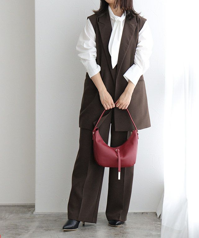 程良い厚みと落ち感のある素材がきれいなシルエットを作り出します。やや光沢のある質感が上品できちんとした印象に。