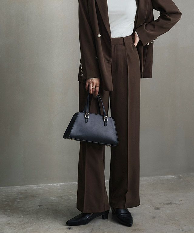 程良い厚みと落ち感のある素材がきれいなシルエットを作り出します。やや光沢のある質感が上品できちんとした印象に。