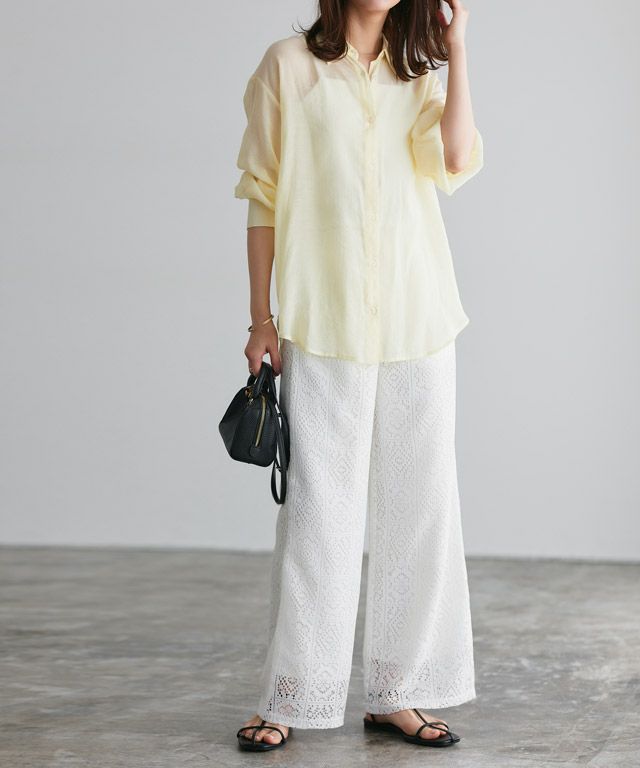 クロシェレースが旬な印象に導き、スタイリングにアクセントをプラスしてくれ、着映える一枚。