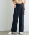 ウエストサイドのゴールドボタンが上品なアクセントになるパンツ。ハイウエストでもスリットを入れることで、すっきりとした印象に◎インスタイルはもちろん、アウトにしてもシンプルなタックパンツとして着回せるアイテムです。
