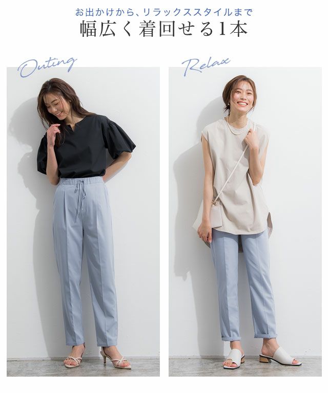 クセになる、この穿き心地。“ストレッチツイルテーパードパンツ” 動きに合わせてフィットする、伸縮性の高い素材を使ったパンツです。抜群のストレッチ感だからこそ、日常のあらゆる動作も快適に◎ 脚のラインを拾わず、ストレスフリーに着用でき、リラクシーシルエットながらもセンタープレスでスッキリ見えるデザイン◎ウエストは紐付きで、簡単にサイズ調整が可能です。 【ブランド】 marvelous by Pierrot(マーベラスバイピエロ)