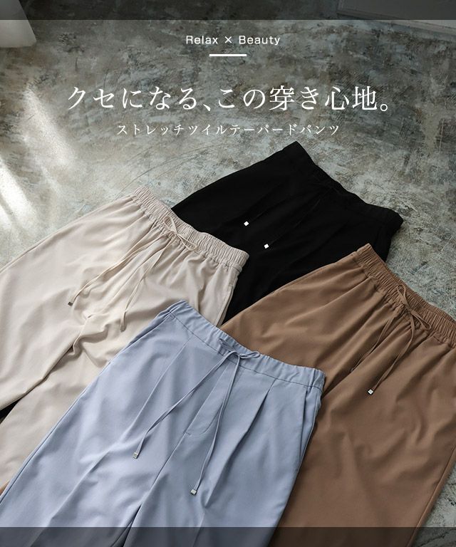 クセになる、この穿き心地。“ストレッチツイルテーパードパンツ” 動きに合わせてフィットする、伸縮性の高い素材を使ったパンツです。抜群のストレッチ感だからこそ、日常のあらゆる動作も快適に◎ 脚のラインを拾わず、ストレスフリーに着用でき、リラクシーシルエットながらもセンタープレスでスッキリ見えるデザイン◎ウエストは紐付きで、簡単にサイズ調整が可能です。 【ブランド】 marvelous by Pierrot(マーベラスバイピエロ)